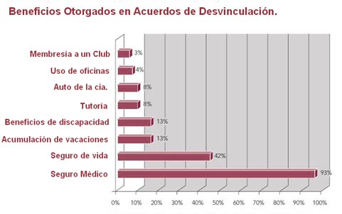 El siguiente cuadro, fruto de una encuesta mundial entre 1.200 líderes de negocios de 45 países elaborada por la consultora de servicios de transición DBM, presenta los beneficios más otorgados a la hora de la desvinculación.
