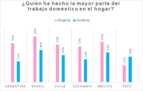 Esto puede explicarse a partir de que las mujeres que participaron en esta encuesta fueron cuestionadas sobre las funciones cotidianas que están restando valor al avance en sus carreras y 53% de las latinas dijo que habían hecho la mayor parte del trabajo doméstico en el hogar, en comparación con el 39% de los hombres.