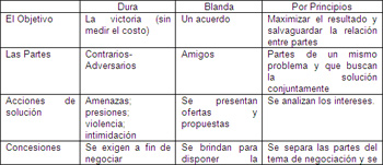 Pero veamos las características de la “negociación dura “ y la “blanda”: