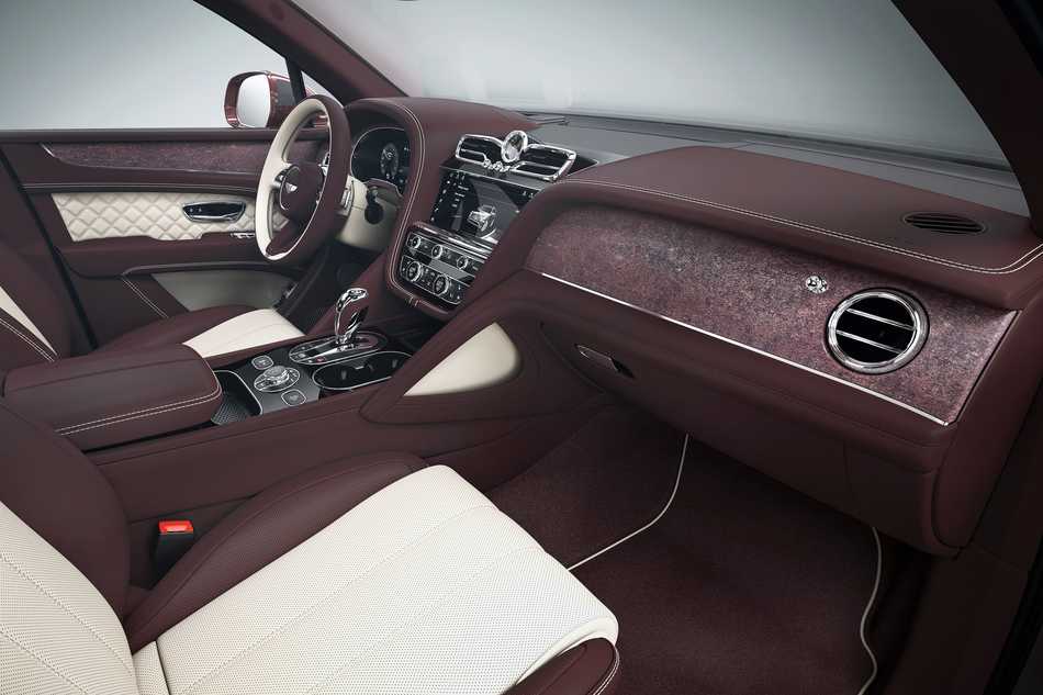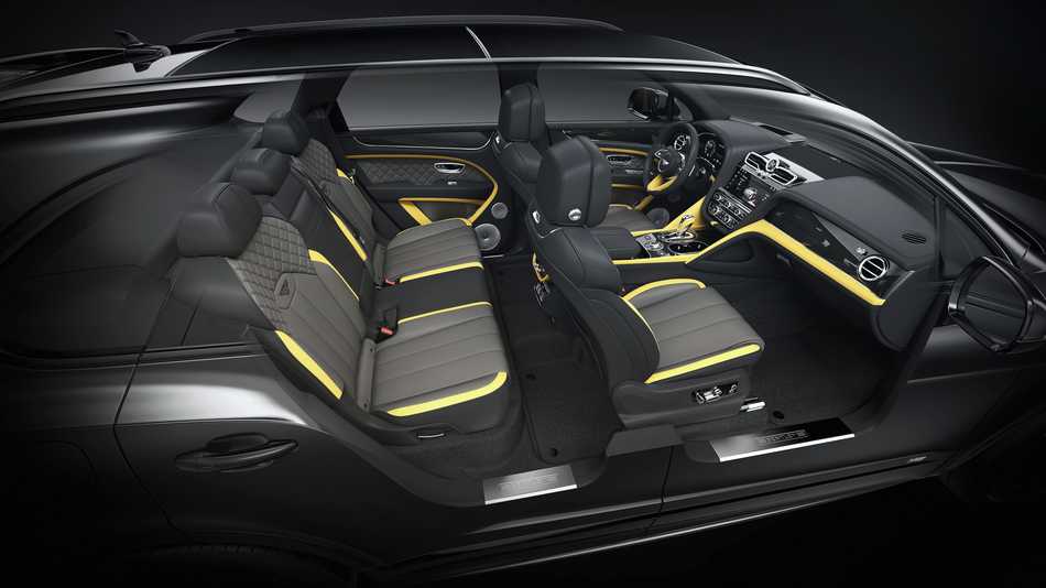 Bentley Mulliner también ofrece acentos de color adicionales para mejorar la atmósfera interior. A través de los ribetes de los asientos, la unión de alfombras y el bordado a mano, los clientes pueden mejorar la apariencia de la cabina. El proceso de coser a mano en cruz una cabaña Bentayga requiere 44 horas para un artesano. El hilo único ha sido diseñado para ser extremadamente duradero y utiliza tintes especiales para mantener su color durante toda la vida útil del vehículo.