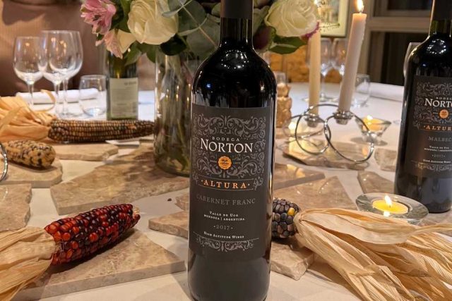 Algunos de los vinos de la bodega que se degustaron junto al menú de cuatro pasos fueron: Altura Malbec, Altura Cabernet Franc y Norton Grüner Veltliner.
