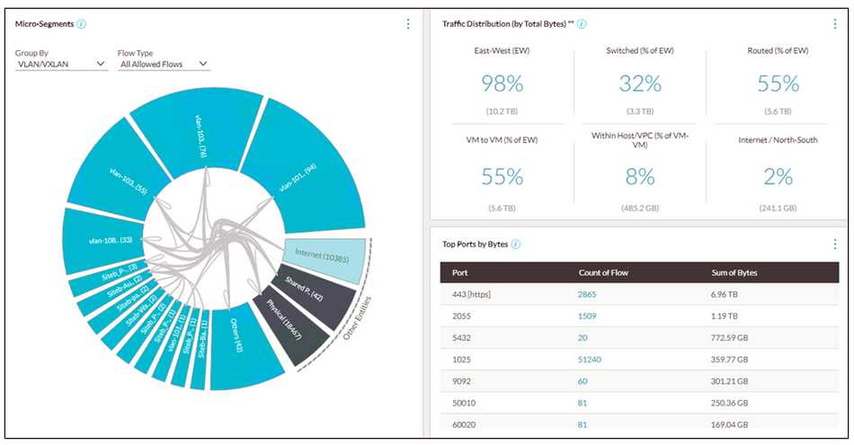 Pero, ¿Cómo podemos saber con exactitud qué dejar o no pasar, sin afectar nosotros mismos accidentalmente el funcionamiento de las aplicaciones? NSX Intelligence y vRealize Network Insight, facilitan la implementación de políticas de zero trust en el día 1, y permiten entender y mapear las aplicaciones, para poder implementar zero-trust visualizando mediante alertas tempranas flujos no securizados o anómalos, de manera de poder bloquearlos rápidamente a través de un click.