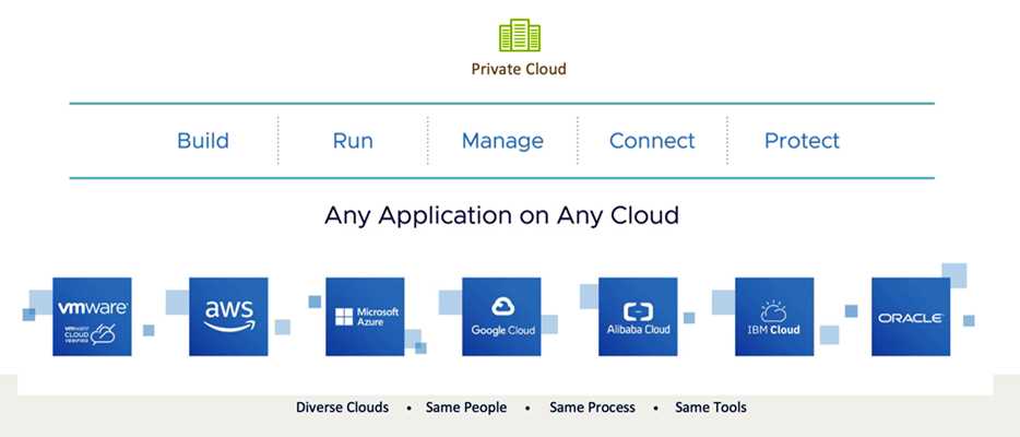 Y todo esto, tanto en nuestra nube privada como en las nubes públicas en las cuales ejecutemos cargas de trabajo, tanto tradicionales como modernas, cloud native y basadas en Kubernetes sobre plataforma VMware.