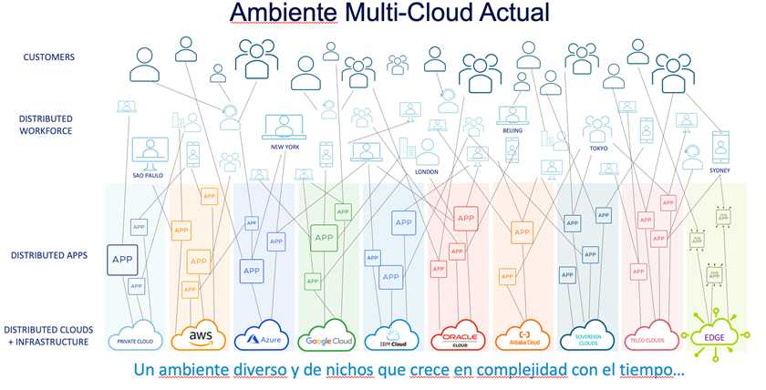 Los múltiples ambientes, interconectados entre sí y con nuestro propio Centro de Datos y con el Edge; cada uno con tecnologías de gestión y administración diferentes hacen que la implementación de políticas en general, y de seguridad en particular, consistentes, se convierta en un desafío mayúsculo.
