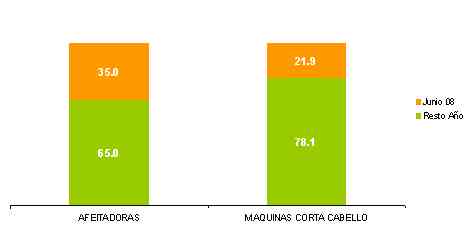 En el mes del día del padre, las afeitadoras son las preferidas del consumidor. Sobre el total vendido de ambas categorías, estas últimas representaron el 53.3% en supermercados durante junio 2008, mientras que las máquinas corta cabellos concentraron el 46.7% restante.