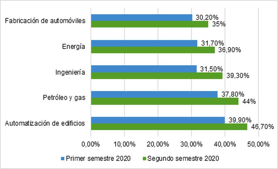 El mayor crecimiento se produjo en el sector de la ingeniería, con una diferencia de casi 8 puntos porcentuales, seguido de automatización de edificios, petróleo y gas