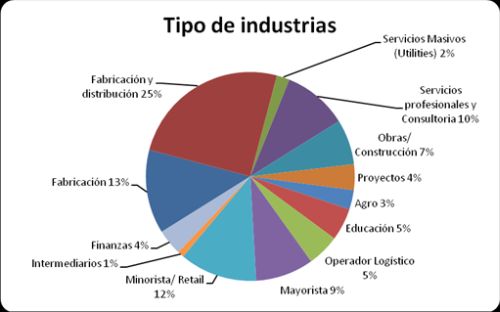 Las 100 empresas que participaron del centro de evaluación pertenecen a diferentes tipos de industrias tal como puede verse en el gráfico “Tipos de industria”.