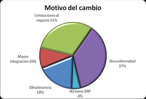 Entre las razones por las cuales las empresas se encuentran en la búsqueda de nuevas herramientas de gestión las firmas que respondieron, manifestaron que poseen necesidades de mayor integración; detectan limitaciones al negocio y reconocen estar disconformes con la plataforma actual. El siguiente gráfico ilustra la situación: