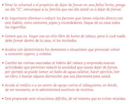 Una serie de pautas que pueden ayudar a abandonar este destructivo hábito son: