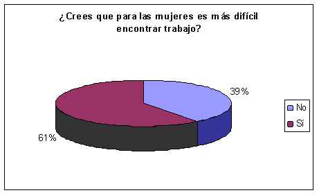 Según la encuesta de Trabajando.com, el 61% de las participantes considera que resulta más difícil encontrar trabajo siendo mujer, mientras que el 39% restante cree que el sexo no es un factor determinante en la búsqueda laboral.