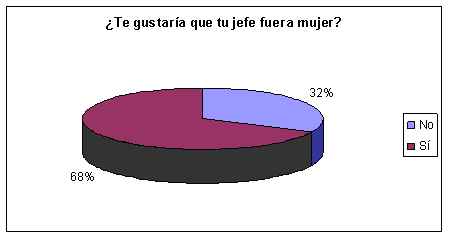 Es así como, ante la posibilidad de elegir entre un jefe hombre o mujer, el 68% prefirió que éste fuera mujer, mientras que sólo el 32% se inclinó por el sexo opuesto.