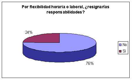 En cuanto a resignar responsabilidades en pos de flexibilidad horaria o laboral, el 76% respondió por el no, mientras que el 24% se inclinó por el sí.