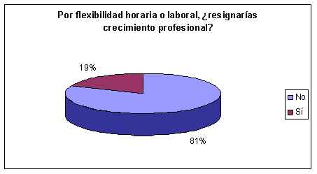 Por último, el 81% de las mujeres encuestadas aseguró que no resignaría su crecimiento profesional para obtener flexibilidad horaria, en tanto sólo un 19% sí lo haría.