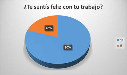 Pero, ¿qué tan felices se sienten los argentinos en sus empresas? Trabajando.com realizó una encuesta a más de 2.200 personas, donde el 80% señaló no sentirse feliz con su trabajo.