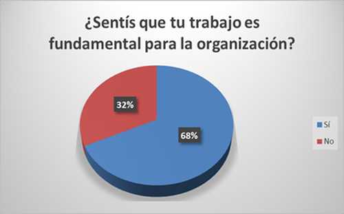 El desempeño realizado por las personas es fundamental para lograr día a día las metas organizacionales, porque es el capital humano el principal elemento de la empresa. Respecto a esto, un 68% de los encuestados dijo que sentía que su trabajo era fundamental para la empresa, mientras que un 32% señaló lo contrario.