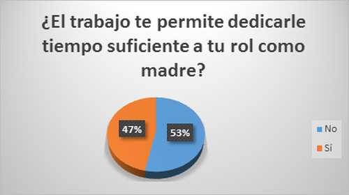 Brindar más tiempo al trabajo que a la familia, puede ser visto como una inversión en los primeros años laborales, porque muchos en esa etapa se están formando como profesionales y esperan sembrar hoy para cosechar mañana. Sin embargo, el rol de la madre es fundamental en la crianza de los hijos, y para ello es necesario estar presente, sobre todo durante las primeras etapas de crecimiento. Al parecer esto les ha pasado la cuenta a la mayoría, ya que un 53% dijo que el trabajo no le permitía dedicarle tiempo suficiente a su rol como madre.