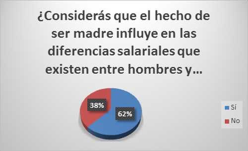 En este sentido, un 62% de las encuestadas considera que el hecho de ser madre influye en las diferencias salariales entre hombres y mujeres.