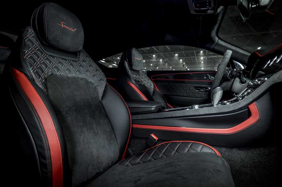 El acolchado Diamond in Diamond de Bentley se incluye de serie, y los reposacabezas con bordado Speed ??distinguen la cabina del Continental GT más potente.