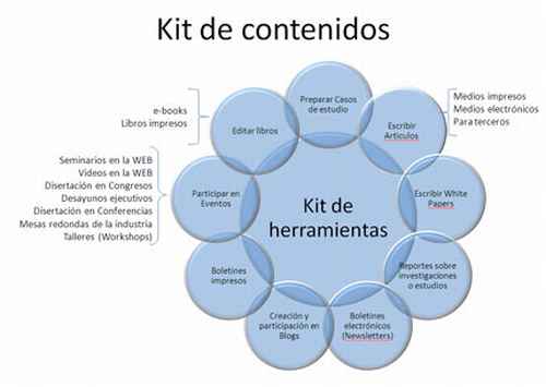 Sus acciones demuestran su liderazgo. Hay una herramienta de mucha ayuda que muestra el tipo de contenido que puede usar para posicionar a su compañía como un verdadero experto. Se llama “Kit de contenidos” y es un mapa muy sencillo de interpretar.