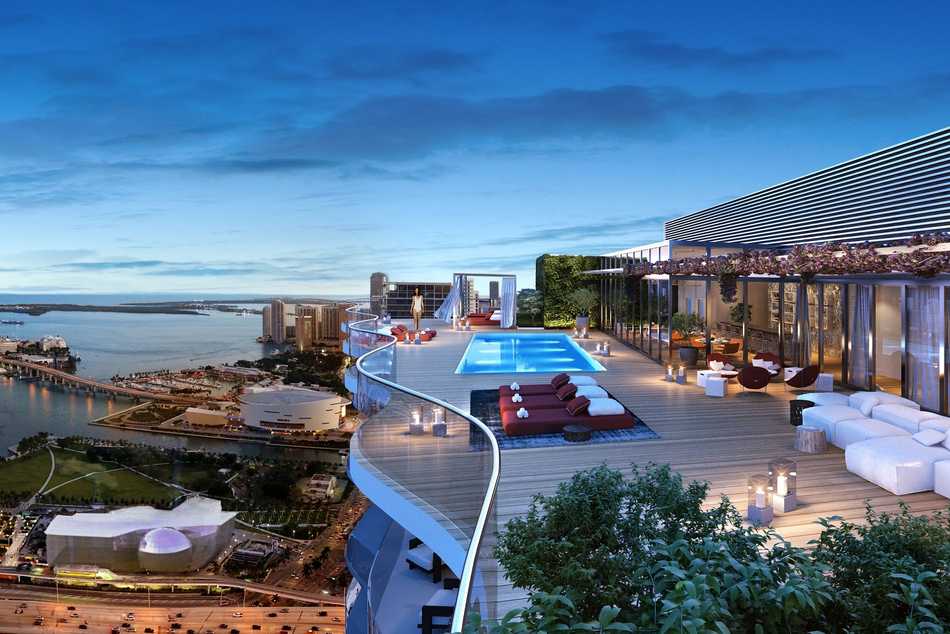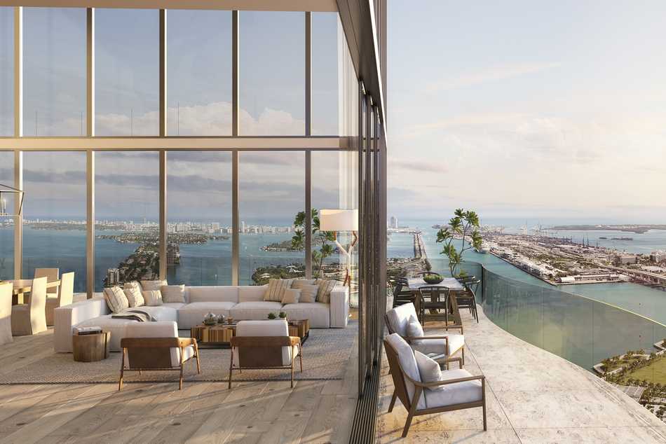 Todas las residencias cuentan con dos ascensores privados equipados con control de acceso biométrico para mejorar la seguridad, como así también un vestíbulo privado. La mayoría de las unidades disfrutan de espaciosas distribuciones de paso con altísimos techos de 3 metros e impresionantes vistas de la bahía de Biscayne, del horizonte del centro de Miami e impresionantes puestas de sol desde el oeste.