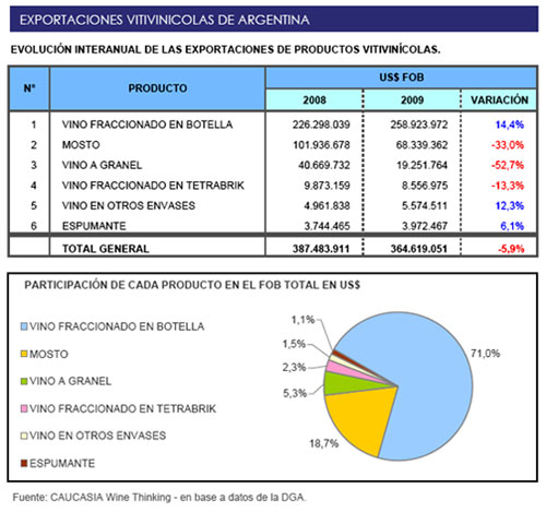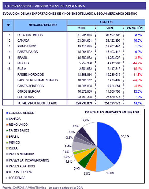 Según el informe de Caucasia Wine Thinking, “el vino a granel ya había comenzado a mostrar una tendencia decreciente en el último trimestre del año, que en este 2009 se vio fortalecida por la falta de compras de Rusia y China”.