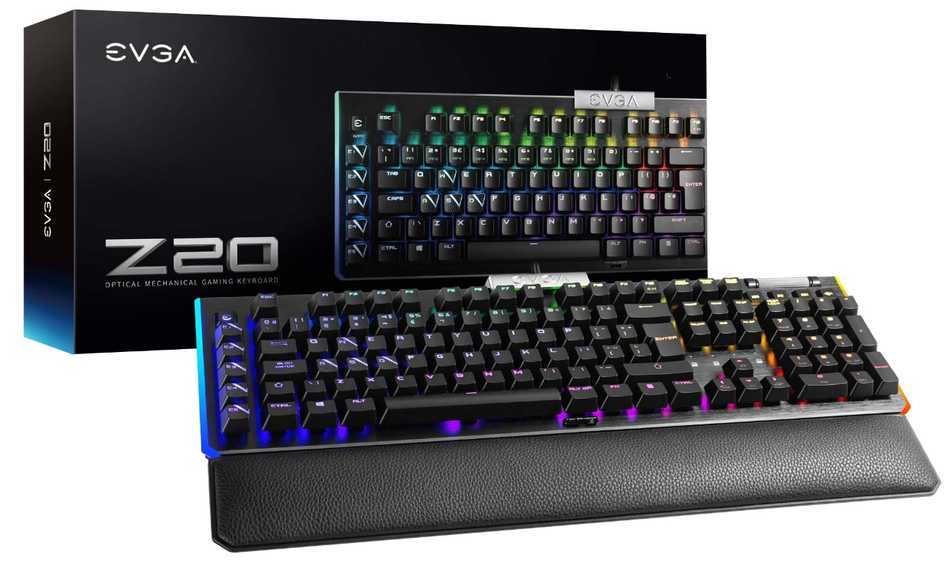 La otra opción con distribución en español que ofrece EVGA es su teclado emblema Z20, el cual al igual que el Z15 posee un procesador ARM de 32 bits para alcanzar una tasa de reporte de 4KHz, aunque en este caso utiliza switchs opto-mecánicos, permitiendo elegir entre variables Lineal y Clicky para que el usuario obtenga la experiencia más adecuada para sus gustos personales.
