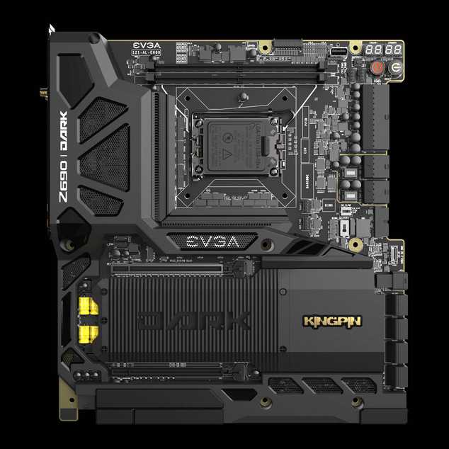 Además, para quienes deseen usarla como su plataforma del día a día, la Z690 DARK KINGPIN también cuenta con una gran cantidad de puertos USB, 8 puertos SATA 6GB/s, dos NICs de 2.5Gbps, Wi-Fi 6E, Bluetooth 5.2, Audio 7.1, y 3 puertos M.2 Key-M, siendo la opción ideal tanto para gaming como para overclocking.