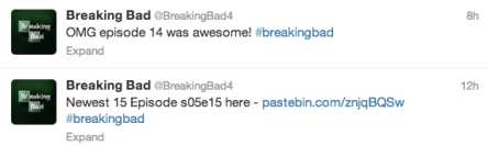 Constantemente los spammers buscan diferentes formas de llamar la atención y llegar a los usuarios de Twitter. En esta ocasión, aprovechándose del gran interés y la creciente expectativa creada alrededor de la serie ‘Breaking Bad’, los spammers han lanzado una nueva táctica para engañar a los tuiteros que son fans de la serie con el pretexto de tener acceso a una supuesta copia filtrada del último episodio. Identificada por Symantec, la táctica se aprovecha de la funcionalidad de crear listas en Twitter y ha sido denominada como “lista de spam”.