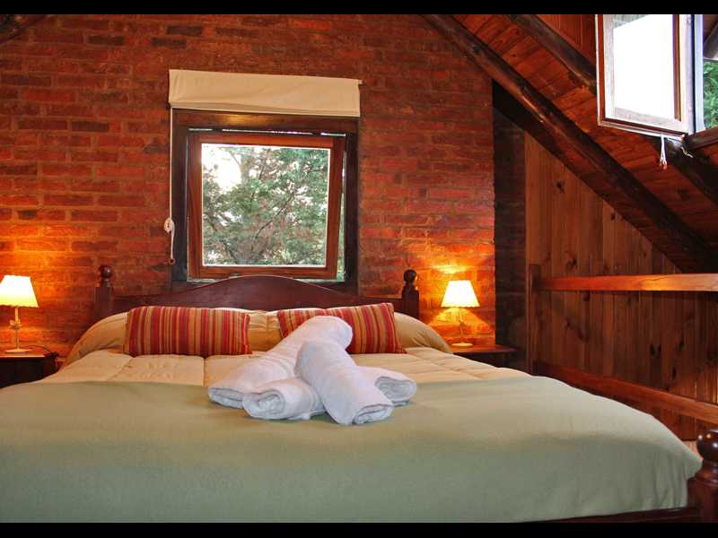 Planta alta: dormitorio, que balconea hacia planta baja, con cama doble. Baño con ducha.