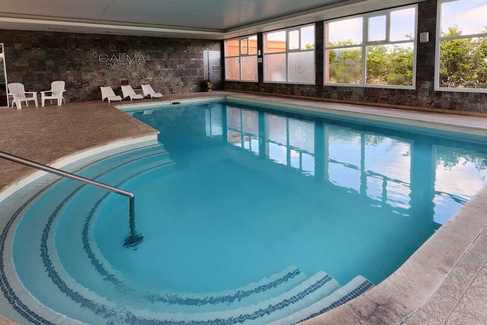 Calma Spa cuenta con sauna húmedo y seco, ducha escocesa, salas de masajes, gimnasio, sala de relax y piscina cubierta climatizada.