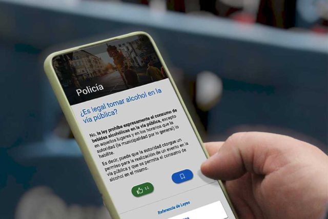 Al abrir la aplicación, uno puede buscar el problema que está teniendo buscando por palabras, o por lugar: indicando donde sucede la situación, y seleccionando qué clase de problema es, el usuario puede encontrar lo que dice la ley al respecto y como poder usarla a su favor.
