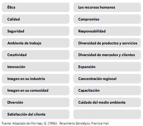 Los valores constituyen las prioridades filosóficas fundamentales con las cuales se comprometen quienes toman las decisiones estratégicas.