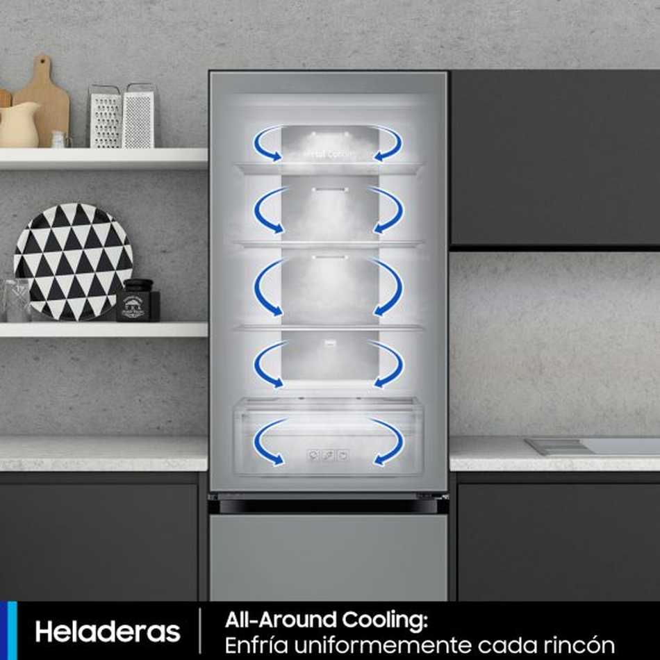 Todos los modelos del lineal tienen Sistema No Frost e incluyen la tecnología All-around Cooling que posibilita la circulación de aire en todos los estantes de la heladera, lo que ayuda a que cada rincón de la heladera tenga la misma temperatura, para que los alimentos se mantengan frescos. Y, además, cuentan con la tecnología Metal Cooling, que ayuda a reducir la pérdida de frío en el interior de la heladera, independientemente de la cantidad de veces que se abra y cierre la puerta.