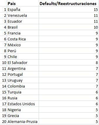 Si tomamos en cuenta los dos tipos de defaults mencionados (aquellos originados por guerras/revoluciones y aquellos por tomar/otorgar crédito de mañera irresponsable), podemos conformar esta lista de los m! ás defaulteadores de la historia: