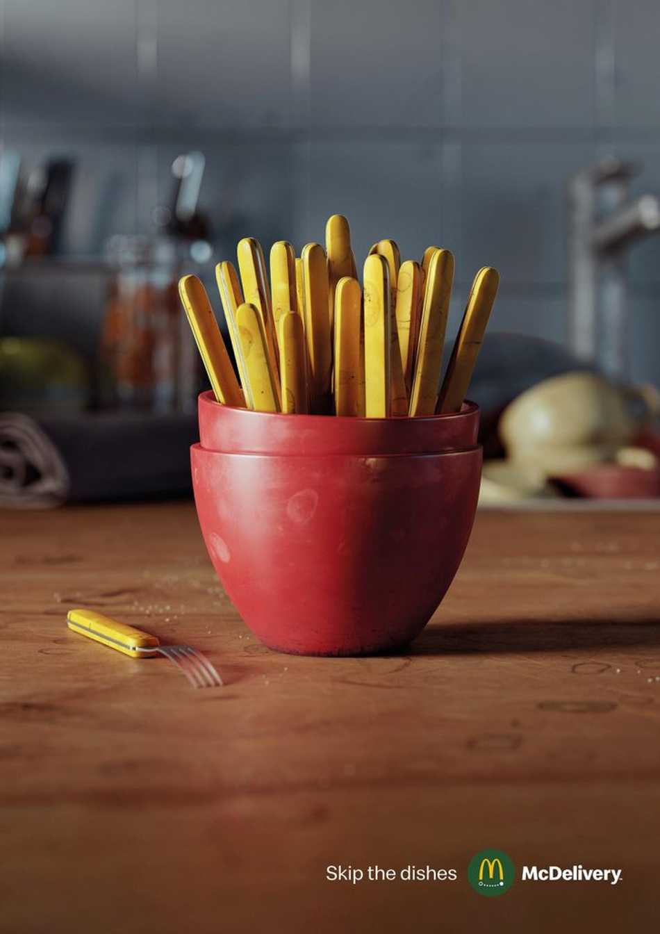 McDonald’s y DDB Praga venden las bondades del servicio McDelivery de la mano de platos, sartenes y cubiertos que, convenientemente colocados, simulan ser los productos de la famosa cadena de comida rápida.