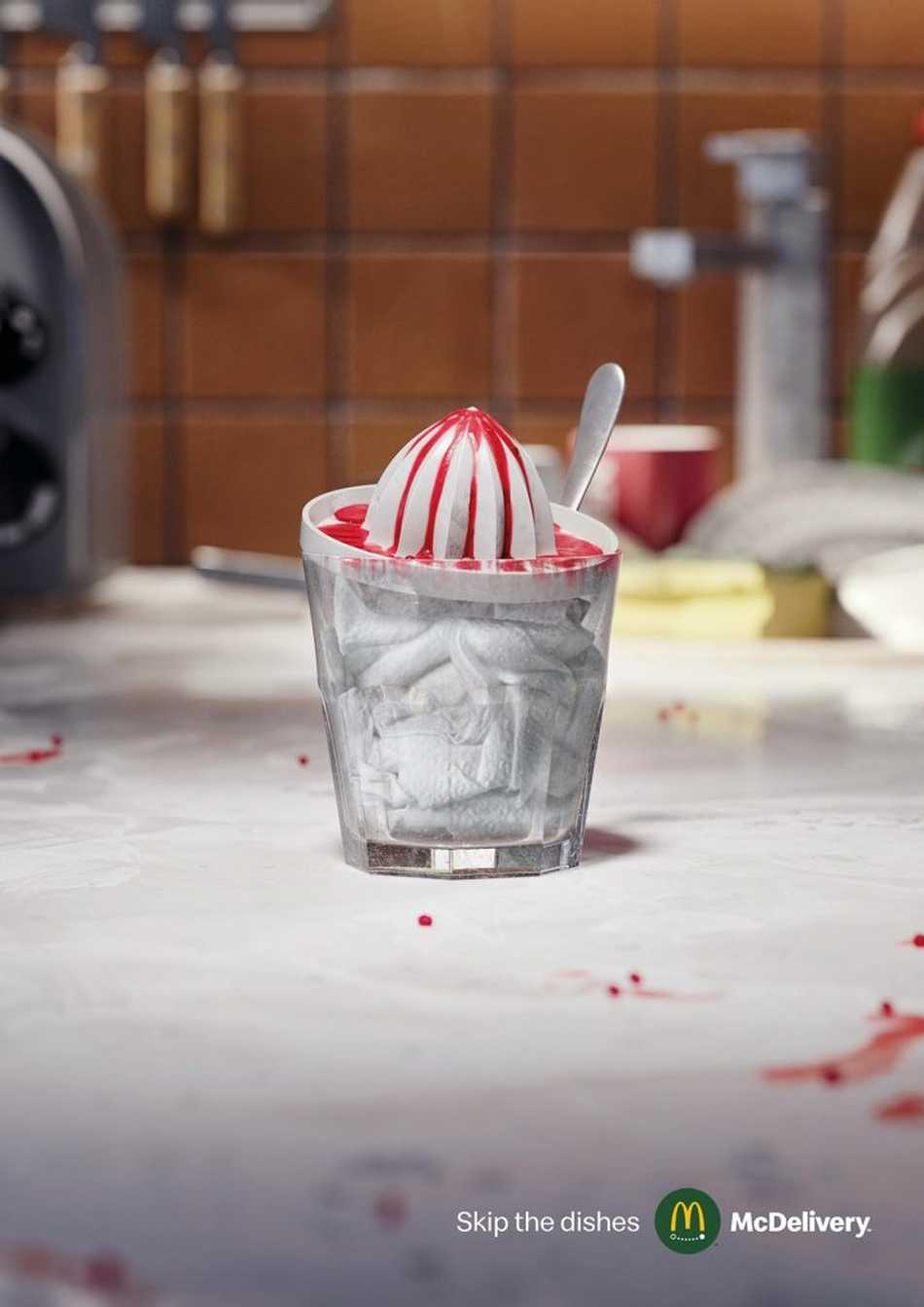 En la campaña varias sartenes y platos apilados simulan ser un sabroso Big Mac, boles y cubiertos se disfrazan de las famosas patatas fritas de McDonald’s y un exprimidor acompañado de unas cuantas servilletas se transforma en un Sundae bañado en salsa de fresa.