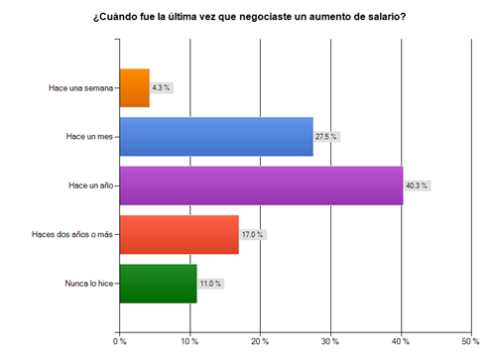 Más del 90% los ejecutivos que negociaron en su trabajo tuvieron éxito, de los cuales el 40,3% sostuvo que negoció un aumento salarial hace más de un año, y un 27,5% hace un mes.