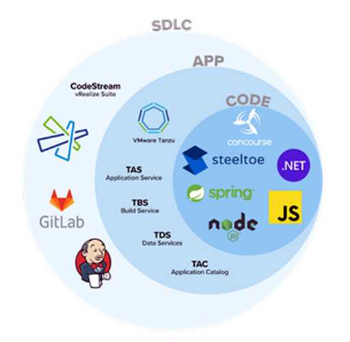 La estrategia de VMware para la construcción de aplicaciones modernas a través de la tecnología Tanzu, apunta a ser abierta, altamente integrable, basada en open-source y software standard como Kubernetes (proyecto para el cual VMware es uno de los mayores contribuidores). Tanzu también soporta frameworks de desarrollo, lenguajes y herramientas existentes y muy utilizados tales como .NET, Spring, Node, o JavaScript para mejorar la experiencia de los desarrolladores, integrándose también a herramientas que soportan el ciclo de desarrollo de software en ambientes Devops tales como GitLab o Jenkings.