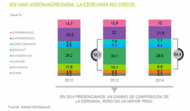 La cadena Dia% incrementó un 60% su facturación en 2014, aumentando el gasto medio de sus compradores más leales por arriba de la suba de precios, y también ganando compras del autoservicio; y por su parte Carrefour Express ve subas del 54% en su ticket, siendo el rubro de bebidas su punto débil para desarrollar las compras chicas.