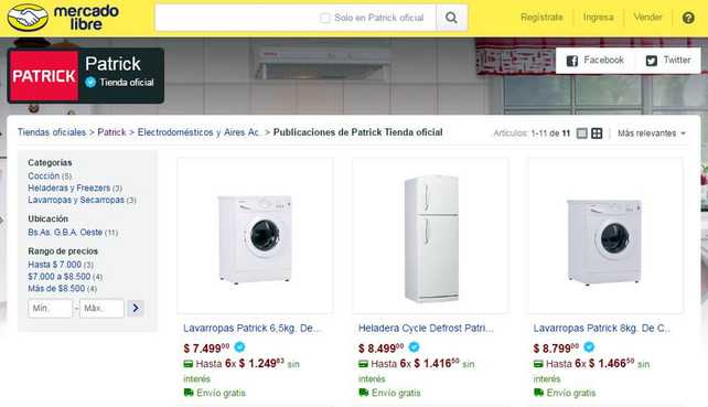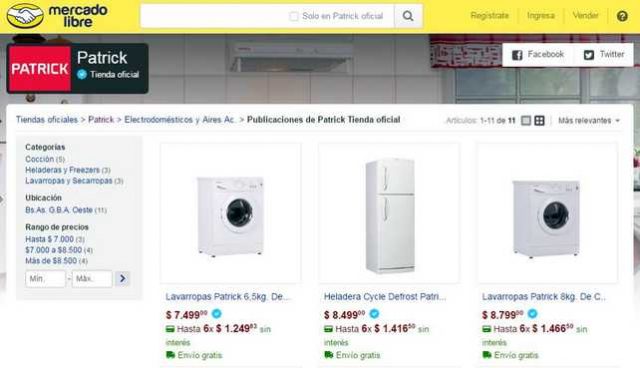 Ingresando a http://tienda.mercadolibre.com.ar/patrick, podrán comprar los siguientes productos: heladeras, cocinas, lavarropas y lavasecarropas.