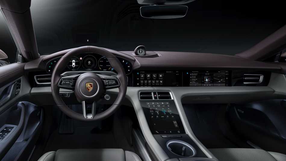 El habitáculo del Taycan dio paso a una nueva era en 2019, con su estructura limpia y una arquitectura novedosa. El cuadro de instrumentos curvado e independiente es el punto más alto del tablero. Además, hay otra pantalla central de 10,9 pulgadas para el sistema de infoentretenimiento y una tercera opcional para el acompañante.