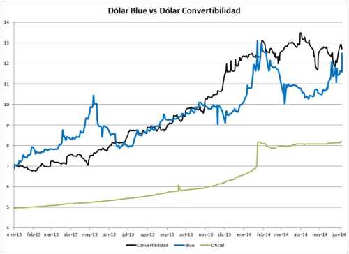 Hasta el día jueves, el camino del dólar blue era solamente hacia arriba, acercándose a la zona de 13 pesos. Sin embargo, tuvimos el día de la bandera una moderación por parte de la presidente Cristina Kirchner diciendo que «le vamos a pedir al juez que genere las condiciones para negociar». ¿Qué quiere decir esto? No me queda muy claro. El fondo NML Capital ya ganó y el margen de negociación es mínimo. A lo sumo tendrá que ver cómo ejecutar la sentencia que quedó en firme.