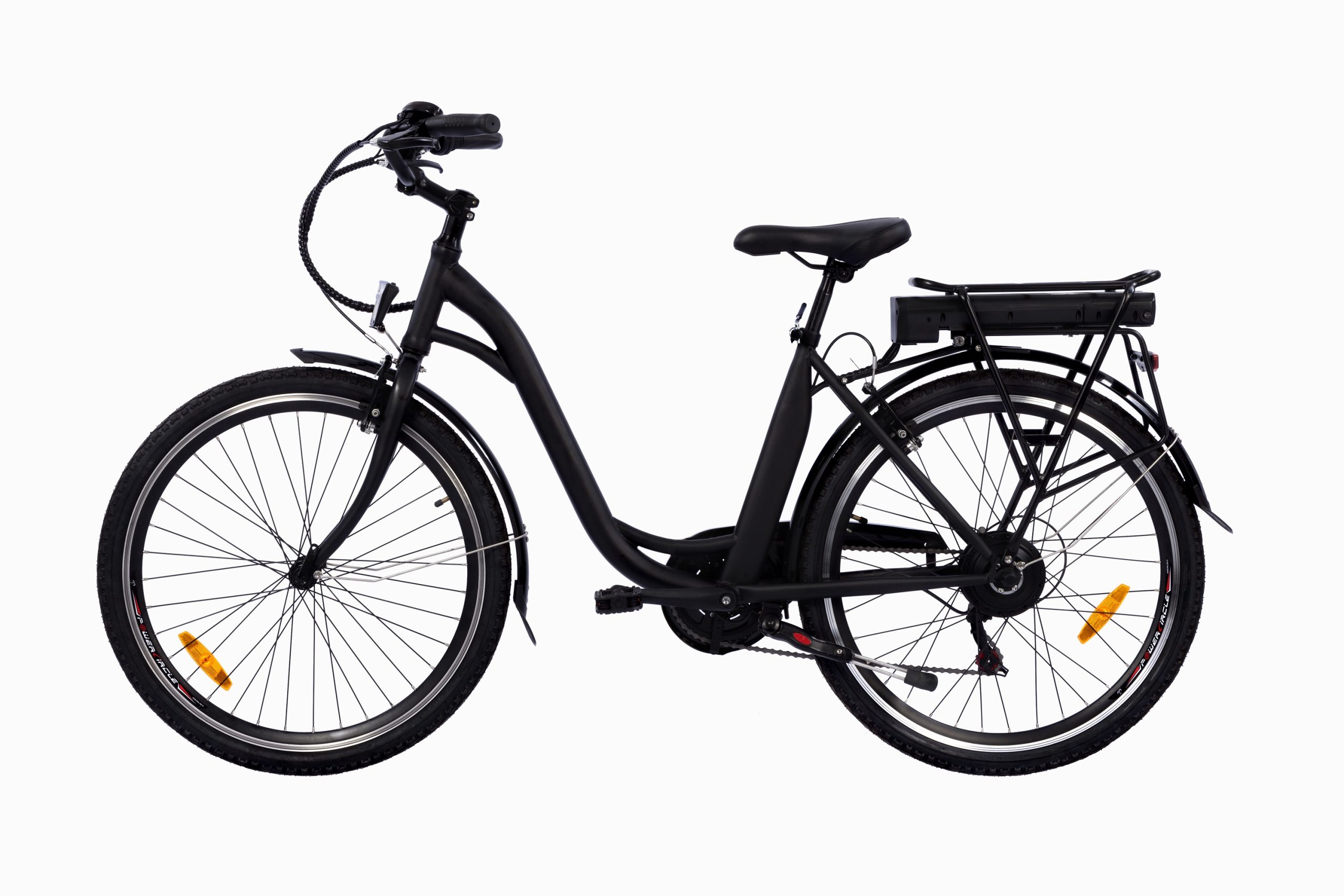 El modelo de rodado 26” tiene cuadro de acero inoxidable, batería extraíble y transportable; cambios Shimano de 7 velocidades. Logra una autonomía de 40km y una velocidad de hasta 25km/h. Su peso es de 23 kilos, cuenta con freno tipo-V; su potencia es de 350 W.