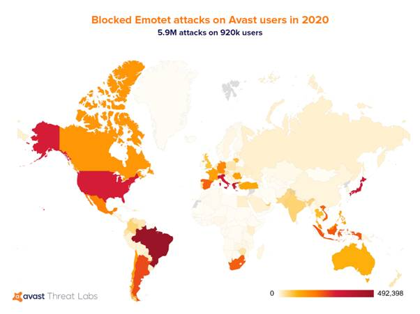 A nivel mundial, Avast bloqueó más de 5,9 millones de ataques Emotet en el último año