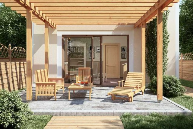 Las pérgolas con camastros o mesas y sillas, para descansar o trabajar al resguardo del sol.