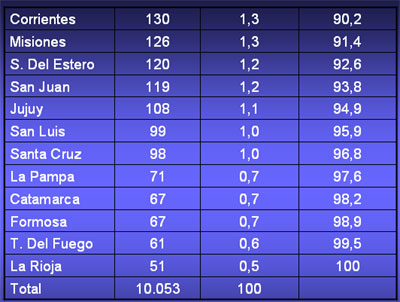 Le siguen en orden de importancia las provincias de Santa Fe, Córdoba y Mendoza, que en conjunto absorben las tres cuartas partes del total.