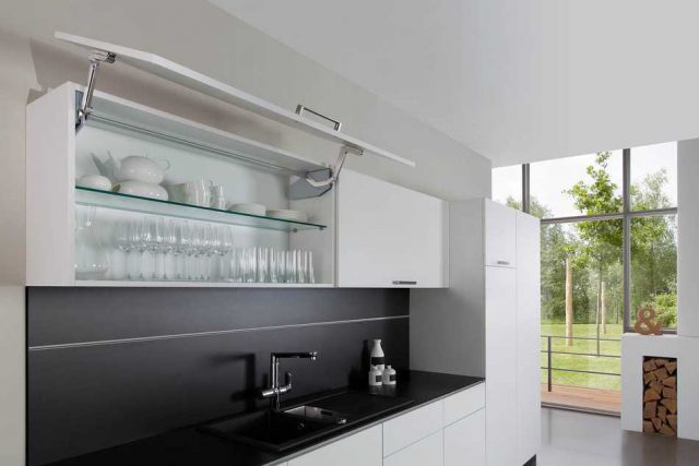- Puertas elevables con cierre soft. Los sistemas de puertas de alacena sobre mesada elevables son ideales para quienes prefieren sumar aliados para el guardado sin que quede todo a la vista pero con liviandad visual.
