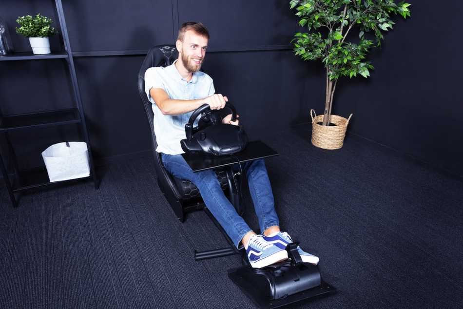 Con un cómodo asiento tapizado en cuero ecológico y una sólida base metálica, la silla para simuladores GXT 1155 Rally ofrece una alta resistencia para disfrutar de tu juego sin preocupaciones, y permite el ajuste de la distancia de los soportes para el volante y los pedales para lograr la mayor comodidad posible en personas de entre 160 y 210 cm de altura.